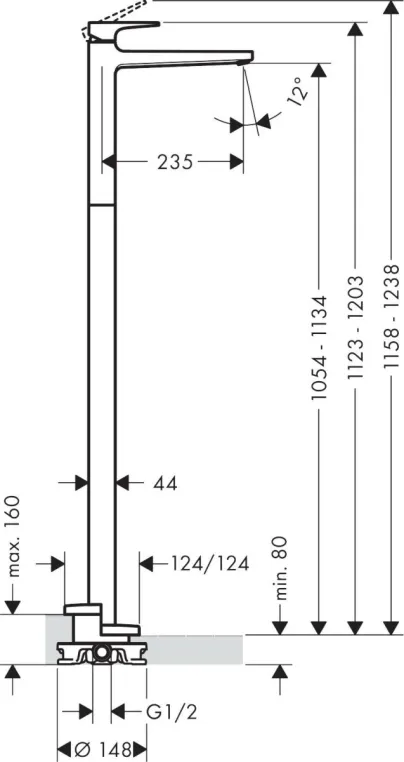Скрытая часть напольного смесителя для ванны