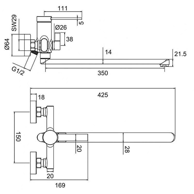 Смеситель для ванны и душа Frap F2267-6 черный купить