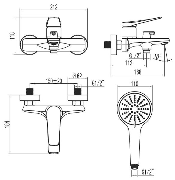 - Расстояние между креплениями к стене: от 130 до 170 мм
