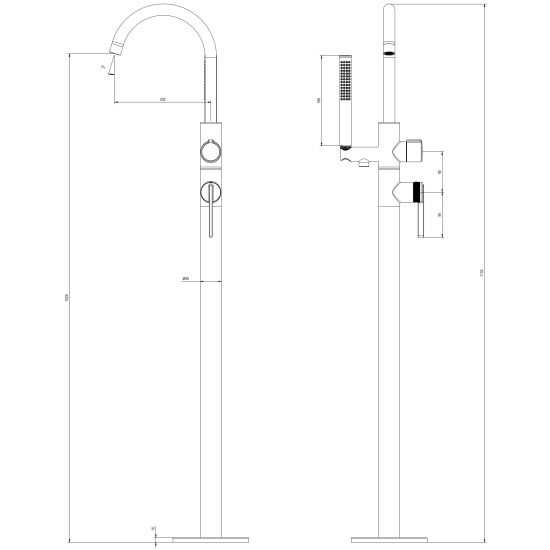Смеситель для ванны напольный с душем DQ Bonn мат.золото (DA1706007)