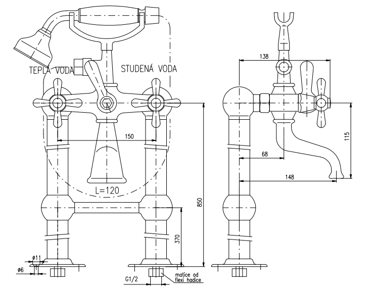 Смеситель для ванны Rav Slezak Morava Retro MK350.5/2Z золото