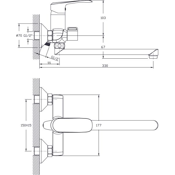 • Высота смесителя: