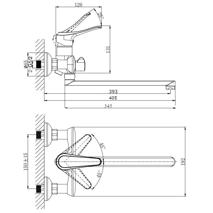 • Высота смесителя: