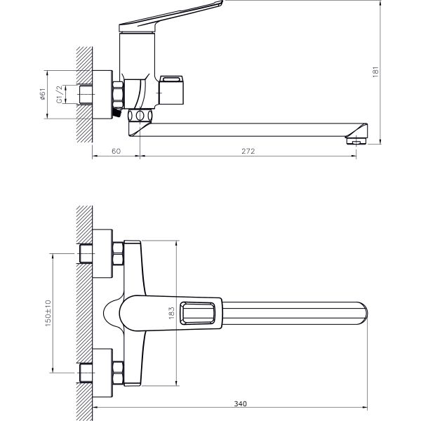 • Высота смесителя: