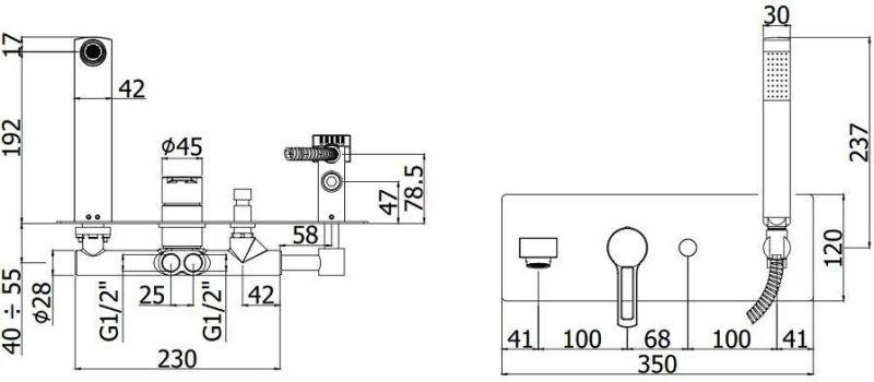 Смеситель для ванны с душем Paffoni Ringo RIN001NO (с внутренней частью)
