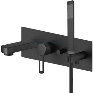 Смеситель для ванны встраиваемый с девиатором на 2 выхода, в к-те с душ.гарнитуром и накладкой из нерж. Стали 350х120мм,девиатор-кнопка, Черный матовыйСмеситель для ванны с душем Paffoni Ringo RIN001NO (с внутренней частью) предназначен для ванны с душем. Своим сдержанным дизайном и колористикой он внесет в интерьер помещения особое настроение, подчеркнув его своеобразие. Он выполнен из надежного материала латунь/Нержавеющая сталь, который не подвержен коррозии, а потому прослужит верой и правдой. Изделие является идеальным примером сочетания высокого качества и привлекательной цены. Управление в смесителе предусмотрено однорычажное, что порадует любителей такого типа смесителей. Высокую жизнеспособность и основательность смесителю гарантирует керамический картридж, отличительной чертой которого является продуманная конструкция - залог отменной работы в течение продолжительного времени. Не зря гарантия на смеситель – 5 лет, в течение которого компания Paffoni заверяет в его бесперебойной работе. Форма излива в смесителе - традиционная, а тип - фиксированный. При покупке учтите, что подводка у смесителя жесткая, что важно для его подключения.