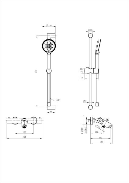 Смеситель для ванны с душевым гарнитуром Wonzon & Woghand WW-C2002-A-MB с термостатом чёрный матовый купить