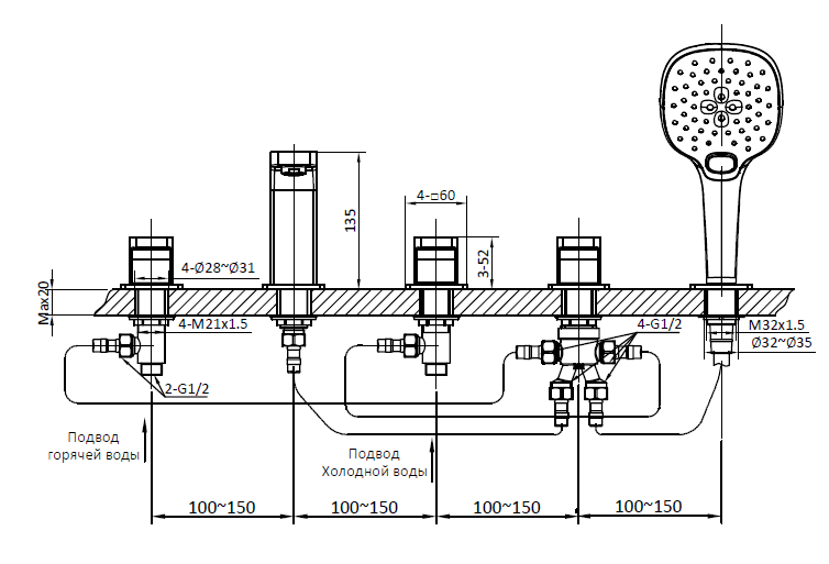 Смеситель на борт ванны с душем AltroBagno Lamberto 020101 Cr хром