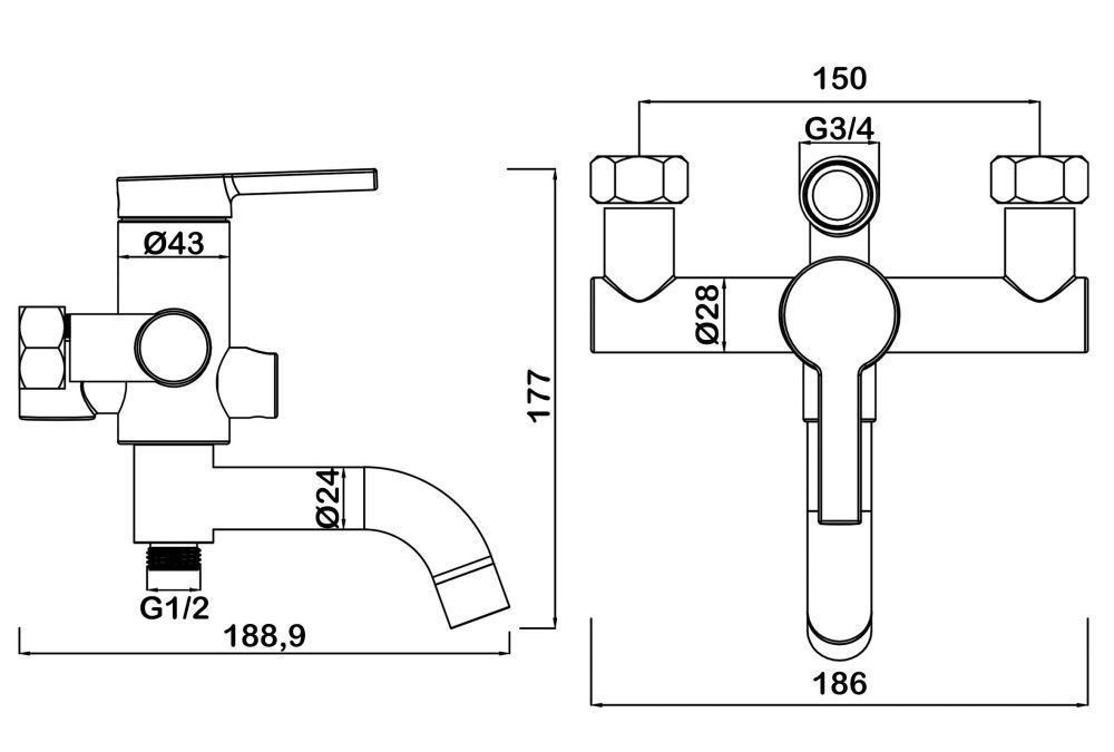 Смеситель для ванны Swedbe Diana 1035 с верхним подключением хром