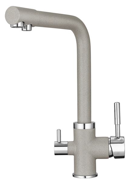 Смеситель для кухонной мойкиЦветовая гамма: Алюминиум, Классик, Антик, Песок, Пирит, Базальт, Арктик, Эспрессо, Графит, Черный, ШварцГибкая подводка (3 шт.); набор для крепления; прокладки уплотнительные (2 шт.); аэраторГарантийный срок от производителя - 5 лет