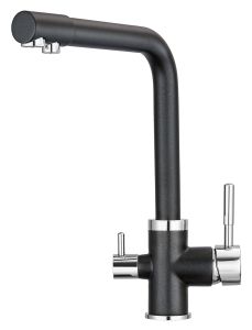 Смеситель для кухонной мойкиЦветовая гамма: Алюминиум, Классик, Антик, Песок, Пирит, Базальт, Арктик, Эспрессо, Графит, Черный, ШварцГибкая подводка (3 шт.); набор для крепления; прокладки уплотнительные (2 шт.); аэраторГарантийный срок от производителя - 5 лет