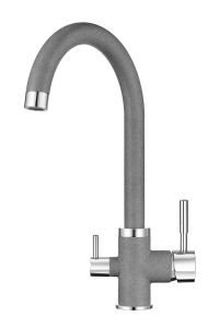 Смеситель для кухонной мойкиЦветовая гамма: Алюминиум, Классик, Антик, Песок, Пирит, Базальт, Арктик, Эспрессо, Графит, Черный, ШварцГибкая подводка (3 шт.); набор для крепления; прокладки уплотнительные (2 шт.); аэраторГарантийный срок от производителя - 5 лет
