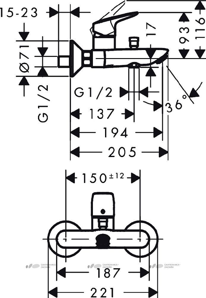 Смеситель Hansgrohe Logis 71400000 для ванны купить