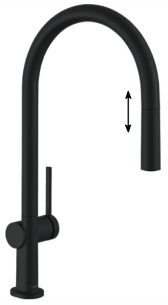 Кухонный смеситель Hansgrohe Talis M54, 72803670, с вытяжным изливом, в комплекте с коробом sBox для шланга, черный матовыйсостоит из: однорычажный кухонный смеситель, корпус для шланга