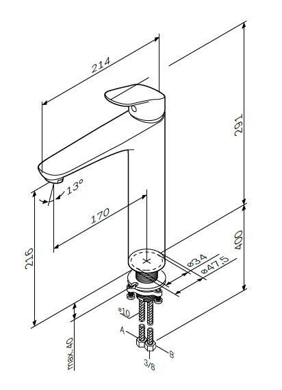 • Высота смесителя: