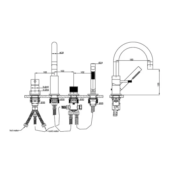 Смеситель врезной Boheme Uno 460, на борт ванны,