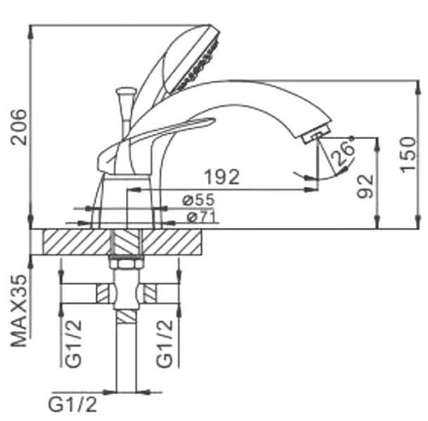 Смеситель на борт ванны Frap H05 F1105 хром Подробнее