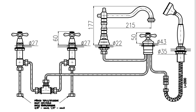 Смеситель на борт ванны Rav Slezak Morava retro MK164.5PZ золото