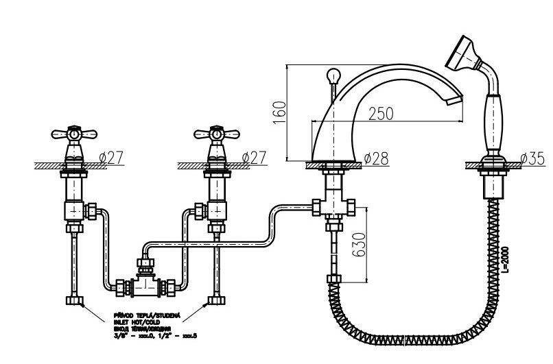 Смеситель на борт ванны Rav Slezak Morava retro MK169.5SZ золото