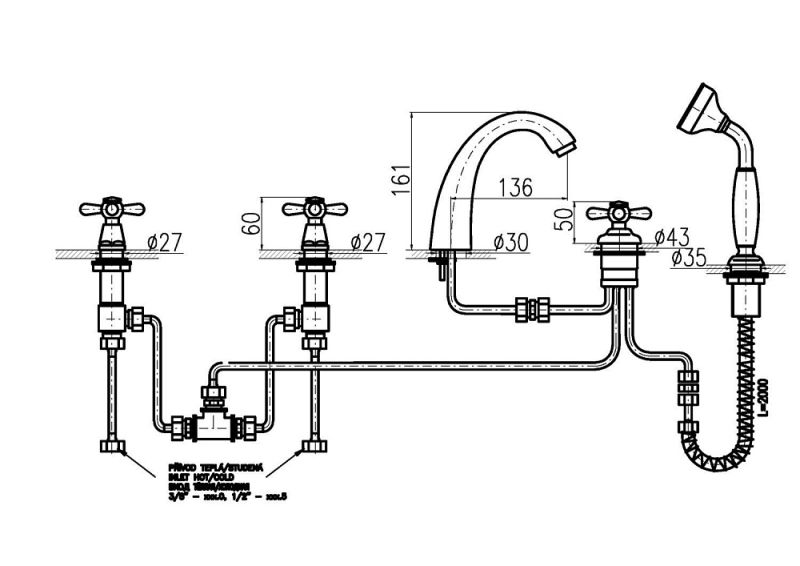 Смеситель на борт ванны Rav Slezak Morava retro MK176.5PZ золото