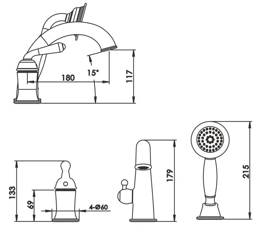 Смеситель на борт ванны Rose R0212H, черный.