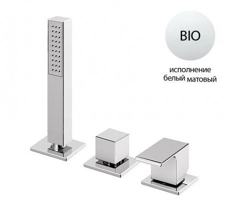 Смеситель на борт ванны с выдвижным душем и переключателем, белый матовый Cezares PORTA-BVDM3-BIO купить