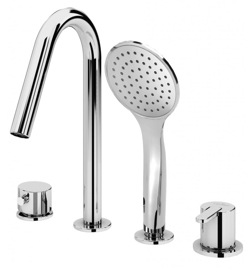 Смеситель на борт ванны с выдвижным душем и переключателем, sunset Cezares LEAF-BVDM4-SS купить