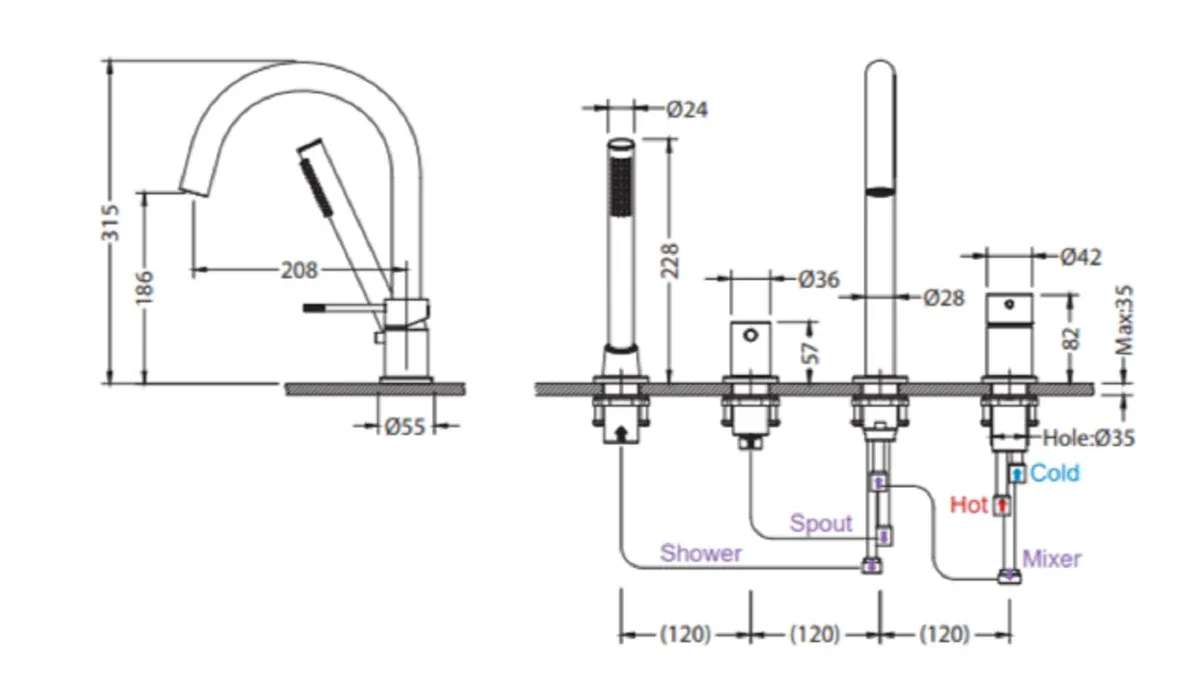 • Смеситель врезной - 1 шт.;