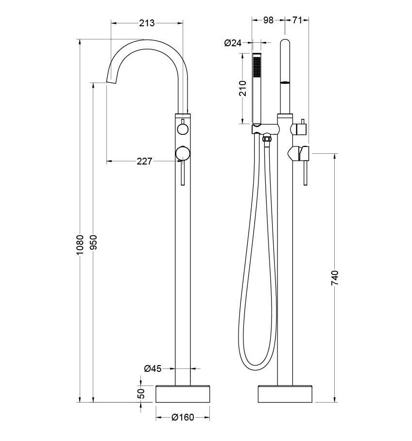 Смеситель напольный для ванны Aquatek Европа AQ1345BGM шлифованный чёрный хром