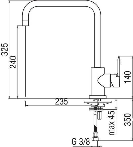 • Высота смесителя: