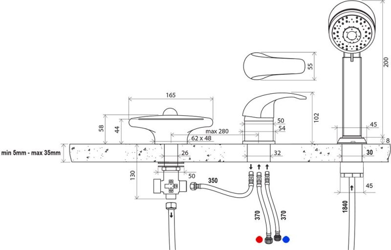 • исполнение: переключение ванна/душ; с лейкой.