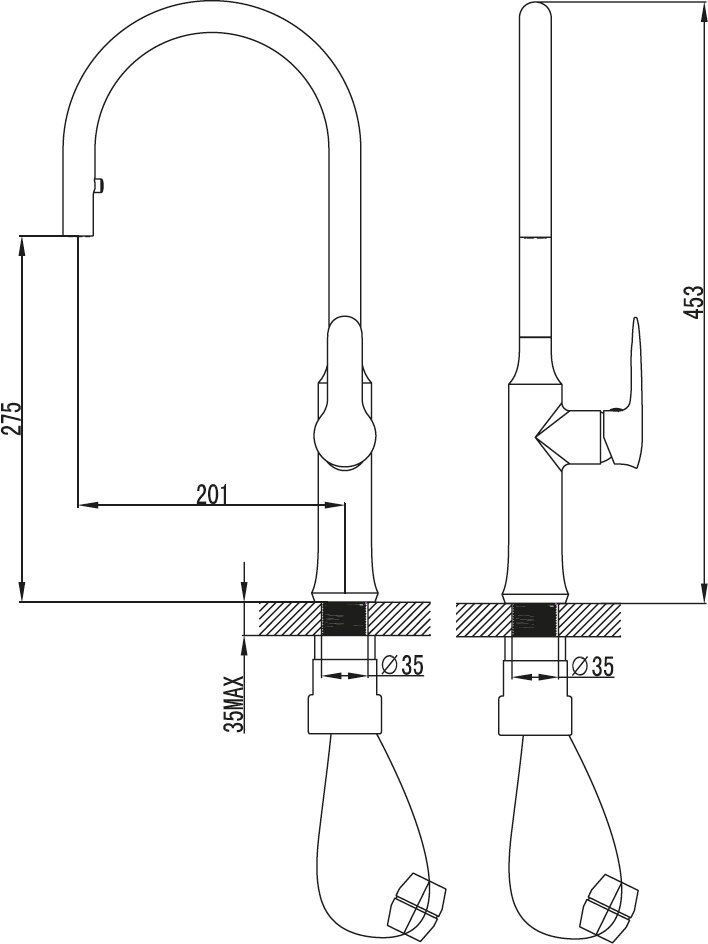 Гибкий излив:нет