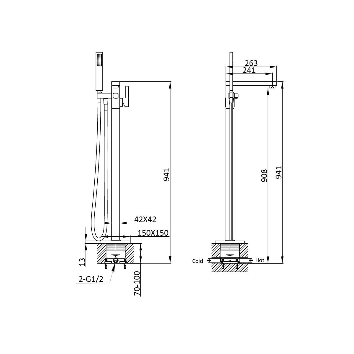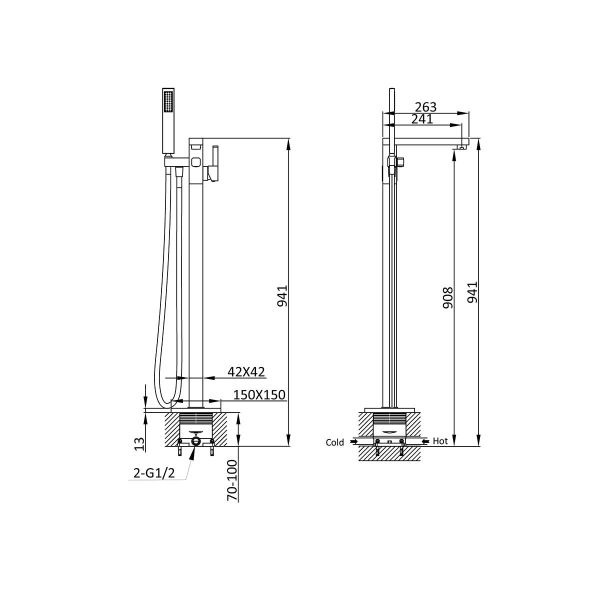 Смеситель Vincea VTF-101CH для ванны и душа напольный хромДлина излива, мм: