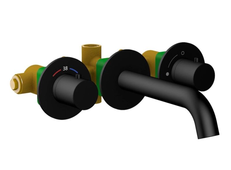 Черная сантехника становится все более популярной для ванных комнат из-за способности расставлять акценты. Встраиваемый смеситель Timo Saona 2381 предназначен для монтажа в твердой или полой стене. Основные преимущества встроенного смесителя: коммуникации, крепления и механизмы спрятаны в стену и видны только декоративные элементы, установить встроенный смеситель можно в любом месте. В смесителе установлен термостатический картридж для поддержания стабильной температуры воды. Регулировка температуры воды осуществляется ручкой термостата расположенной слева. Подача воды и увеличение напора осуществляется поворотом ручки расположенной справа. Сложностей монтажа не возникает при установке смесителя опытным сантехником. Внимательно изучите инструкцию по монтажу и эксплуатации. Черная сантехника требует бережного ухода.