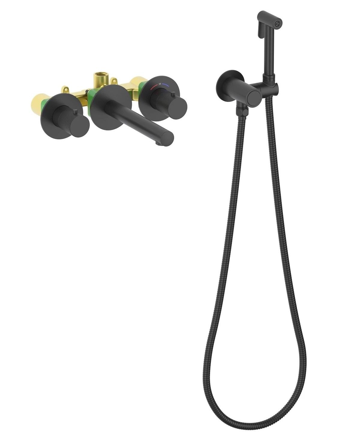 Черная сантехника становится все более популярной для ванных комнат из-за способности расставлять акценты. Встраиваемый смеситель с функцией подключения гигиенического душа Timo Saona 2383 предназначен для монтажа в твердой или полой стене. Встроенныи? блок может быть установлен с левым или правым подключением гигиенического душа. Гигиенический душ можно установить автономно на любом расстоянии от смесителя. Для использования гигиенического душа включать смеситель не требуется. Подача воды на гигиеническую лейку осуществляется нажатием кнопки, расположенной на корпусе держателя лейки. В смесителе установлен термостатический картридж для поддержания стабильной температуры воды в смесителе и гигиеническом душе. Подача воды и увеличение напора в смесителе осуществляется поворотом ручки расположенной справа (при установке душа слева). Сложностей монтажа не возникает при установке смесителя опытным сантехником. Основные преимущества встроенного смесителя: коммуникации, крепления и механизмы спрятаны в стену и видны только декоративные элементы, установить встроенный смеситель можно в любом месте. Внимательно изучите инструкцию по монтажу и эксплуатации. Черная сантехника требует бережного ухода.