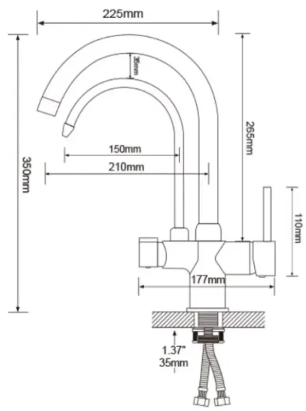 - габариты смесителя (ВхД): 350х225 мм
