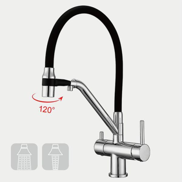 Смесители для кухни Gappo G4398-80 под фильтр с гибким изливом хром/чёрный