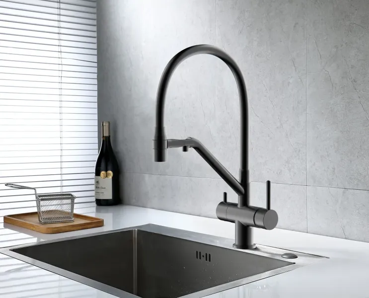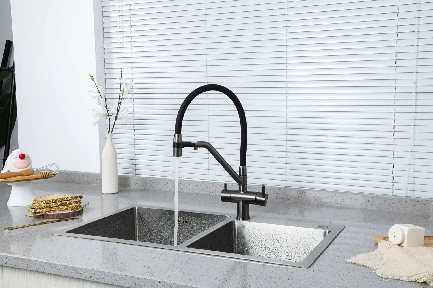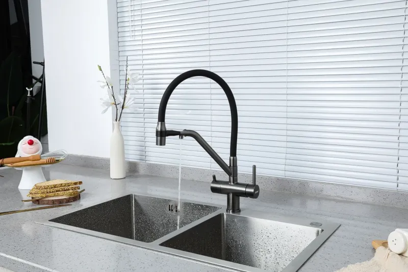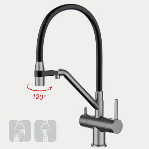Смесители для кухни Gappo G4398-89 под фильтр с гибким изливом оружейная сталь