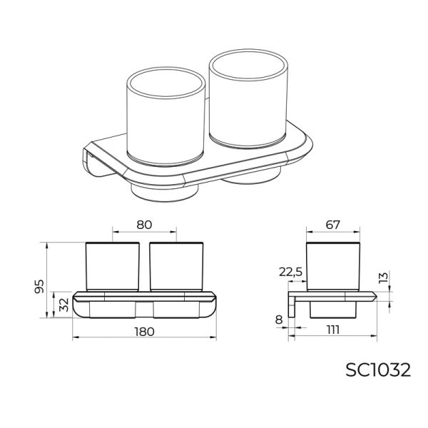 Стакан для ванной комнаты двойной Knotlor SC1032GM, оружейная сталь