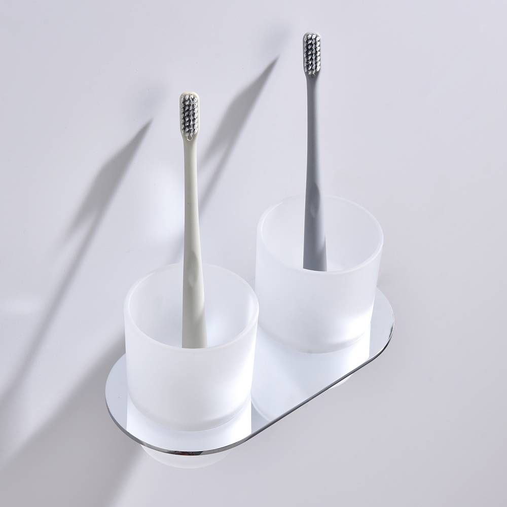 Raglo R300.08 Два стеклянных стакана с держателем. Форма округлая, цвет - хром, глянцевое покрытие. Крепление в комплекте.