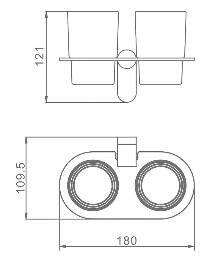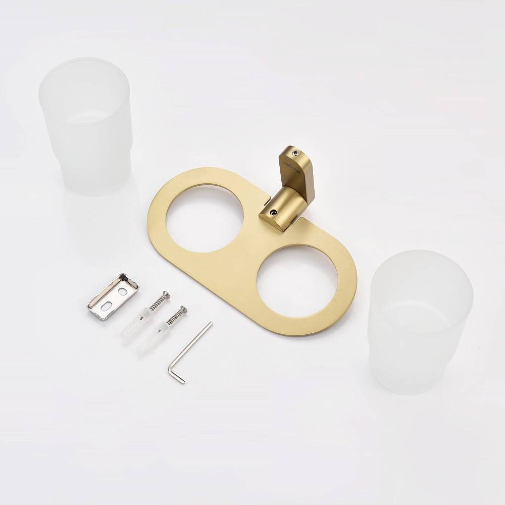 Raglo R300.08.03 Два стеклянных стакана с держателем. Форма округлая, цвет - сатиновое золото, полуматовое покрытие. Крепление в комплекте.