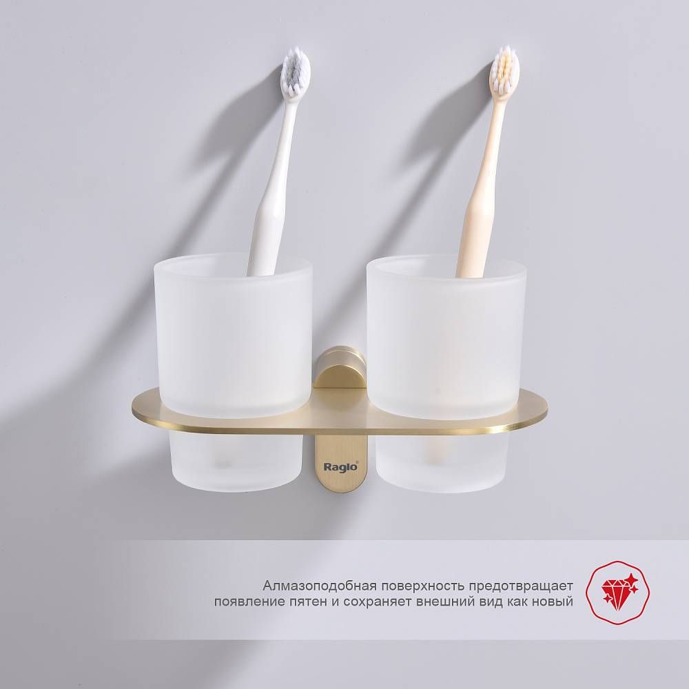 Стакан для ванной комнаты Raglo R300.08.03 двойной золотой сатин купить
