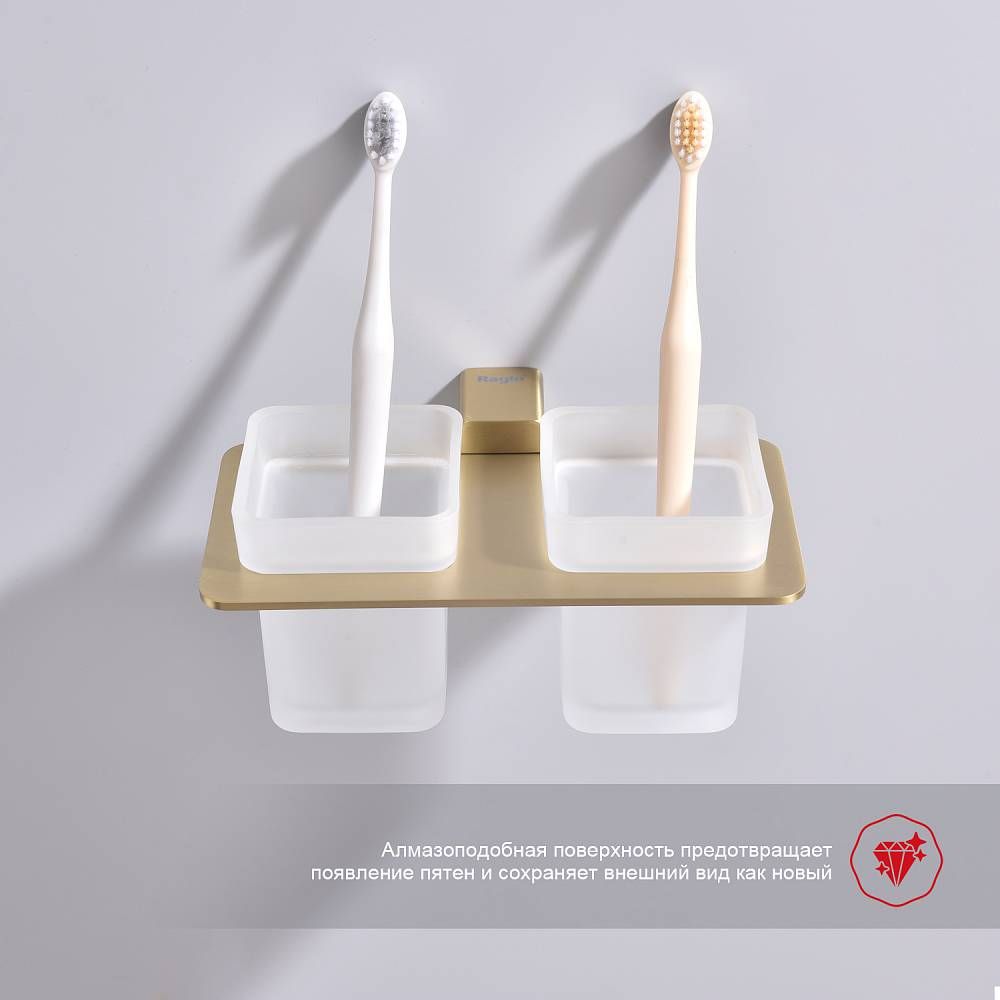 Стакан для ванной комнаты Raglo R301.08.03 двойной золотой сатин купить