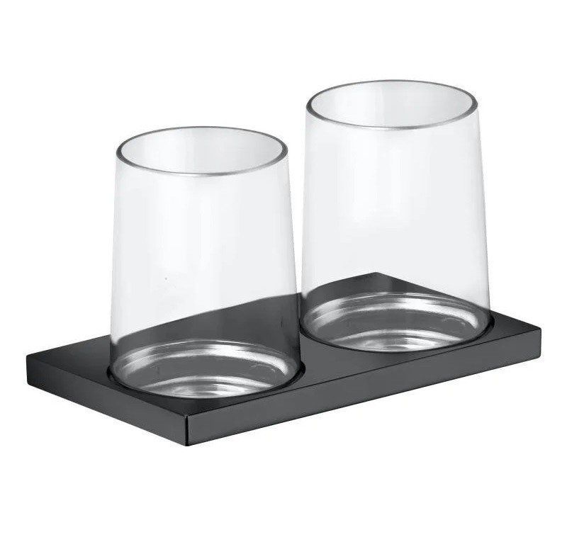 KEUCO EDITION 11 Держатель на два стакана, в комплекте с хрустальными стаканами, хром черный шлиф.