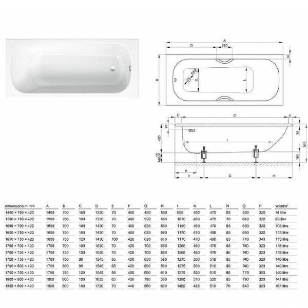 Встраиваемая ванна классической формы с эргономически правильным уклоном для спины предлагается во множестве размеров, позволяя получить комфортные условия для купания даже в небольших ванных комнатах.