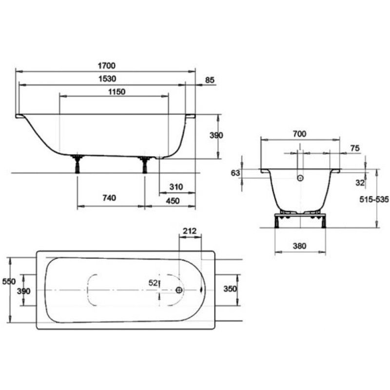 Стальная ванна Kaldwei Eurowa 119812030001 170x70 -Классический прямоугольный вариант одиночной ванны с боковым сливом-Стальная эмаль (2,3 мм) устойчива к царапинам и коррозииВанна Eurowa изготовлена из стали, которая обеспечивает прочность и долговечность, в тоже время дизайн разработан с учетом удобства и комфорта при использовании. Кварцевая эмаль стальной ванны Eurowa не боится ударов, коррозии и легко чистится обычными бытовыми средствами для ухода за плиткой и стеклом. Ванна Eurowa отлично сочетается с маленькими пространствами и выглядит красиво и элегантно в любой ванной комнате.Ножки приобретаются отдельно