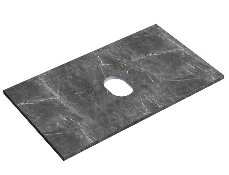 Столешница для ванной комнаты из керамогранита, для установки на подвесную тумбу. C готовым отверстием для установки накладной раковины. Без заранее просверленного отверстия под смеситель.