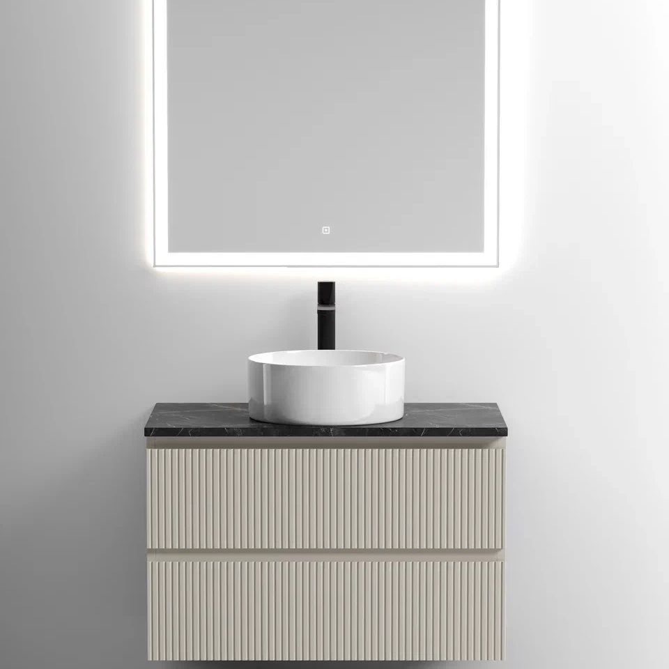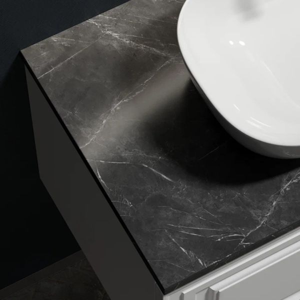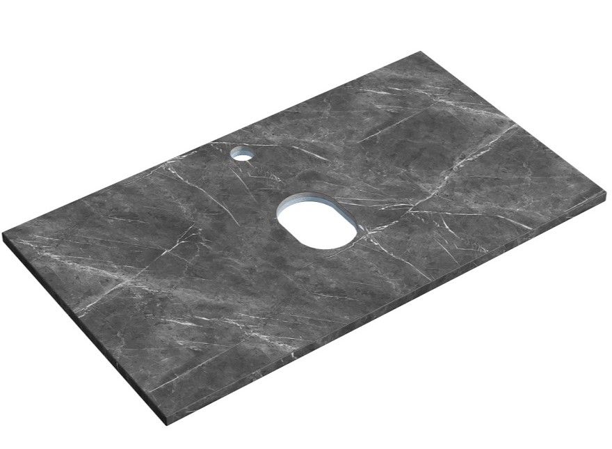 Столешница для ванной комнаты из керамогранита, для установки на подвесную тумбу. C готовым отверстием для установки накладной раковины. С заранее просверленным отверстием под смеситель.