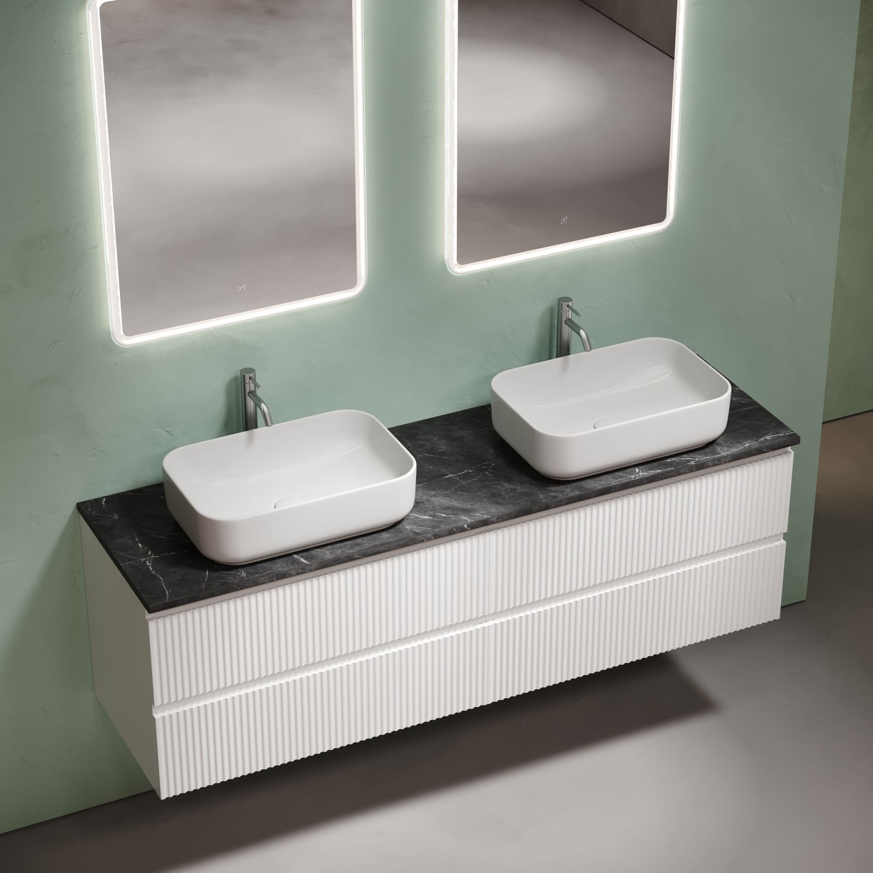 • Возможность комплектации с двумя подвесными тумбами в размере 800 мм из коллекций: FOLK, VERY, SNOB R, SNOB T, MARMI 1.0, MARMI 2.0.