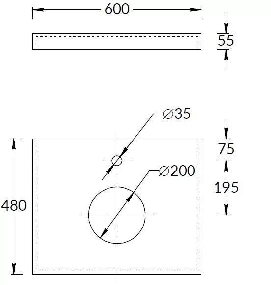 Столешница из керамического гранита «Про Чементо» с отверстием под смеситель. Предназначена для использования раковинами CANALETTO, а также с тумбами MODULA. Отверстия для раковины и смесителя располагаются в центре. Смеситель устанавливается в столешницу (используйте смесители с подходящим типом установки).